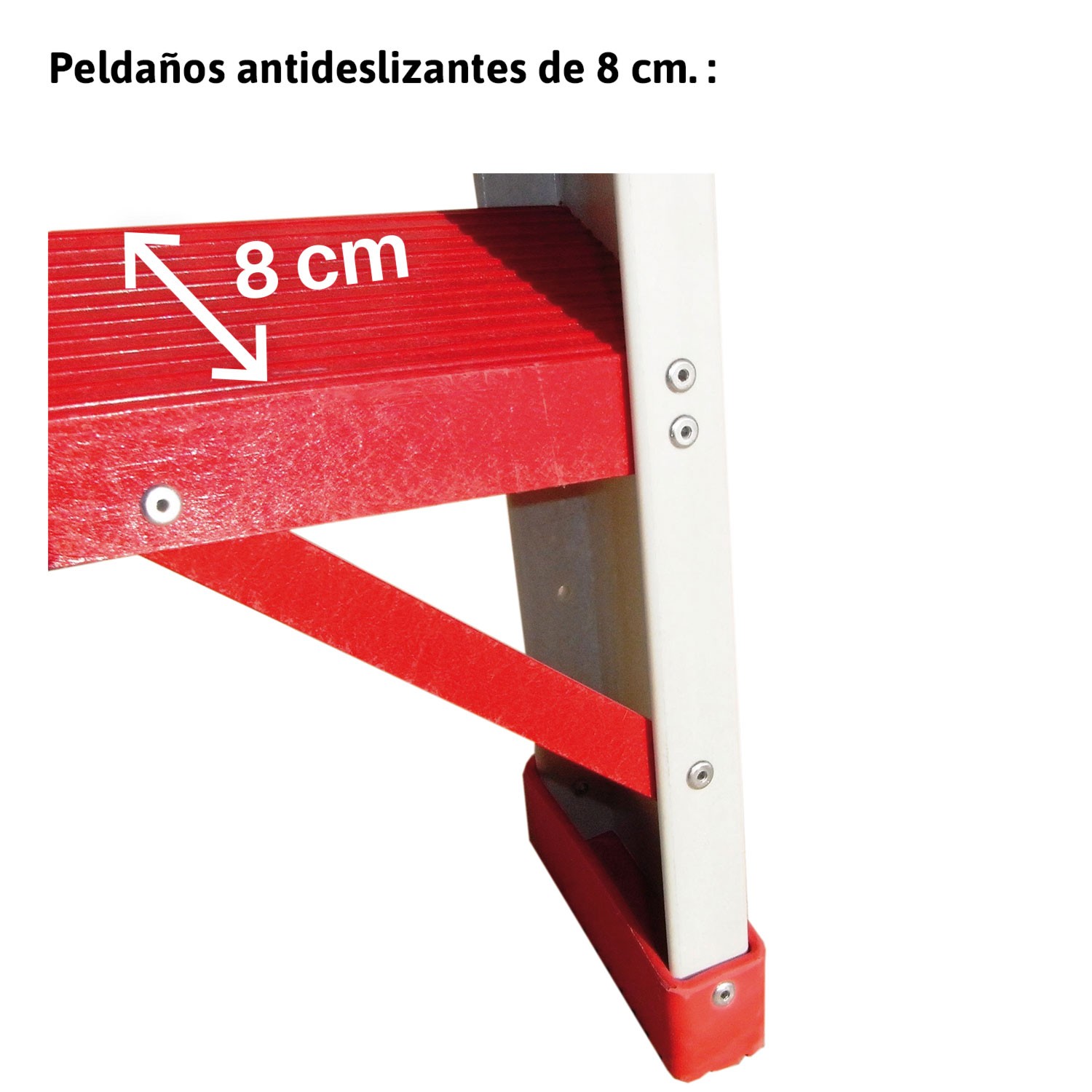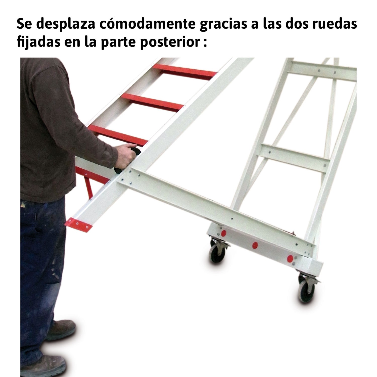 El modelo ALFI está fabricado en fibra de vidrio, posee una plataforma de 60x60 cm, barandillas de protección de 1 metro de altura, pasamanos laterales y ruedas fijadas en la parte posterior para un desplazamiento cómodo al lugar de trabajo.
