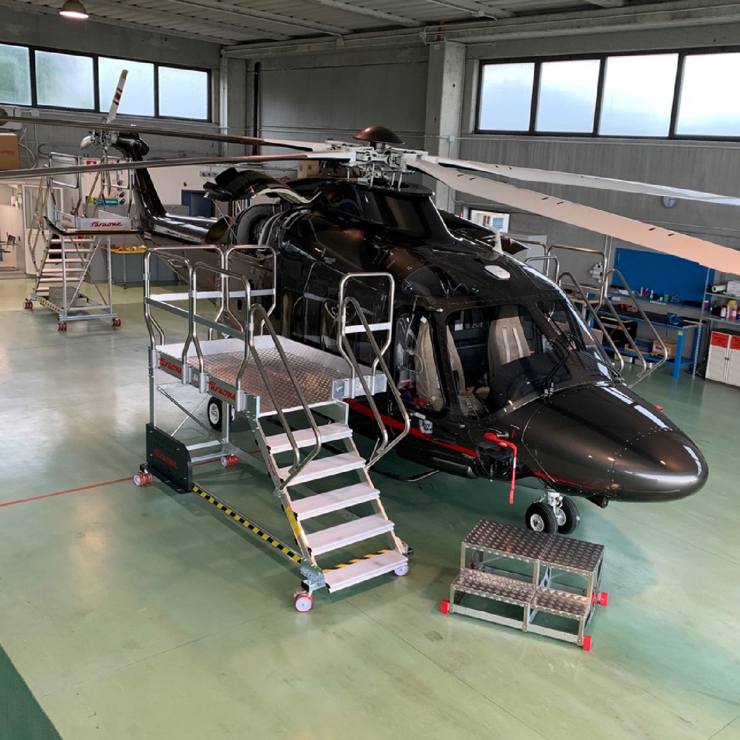 Amplia variedad de estructuras a medida especialmente diseñadas para el mantenimiento de helicópteros. Configurables según requisitos del cliente.