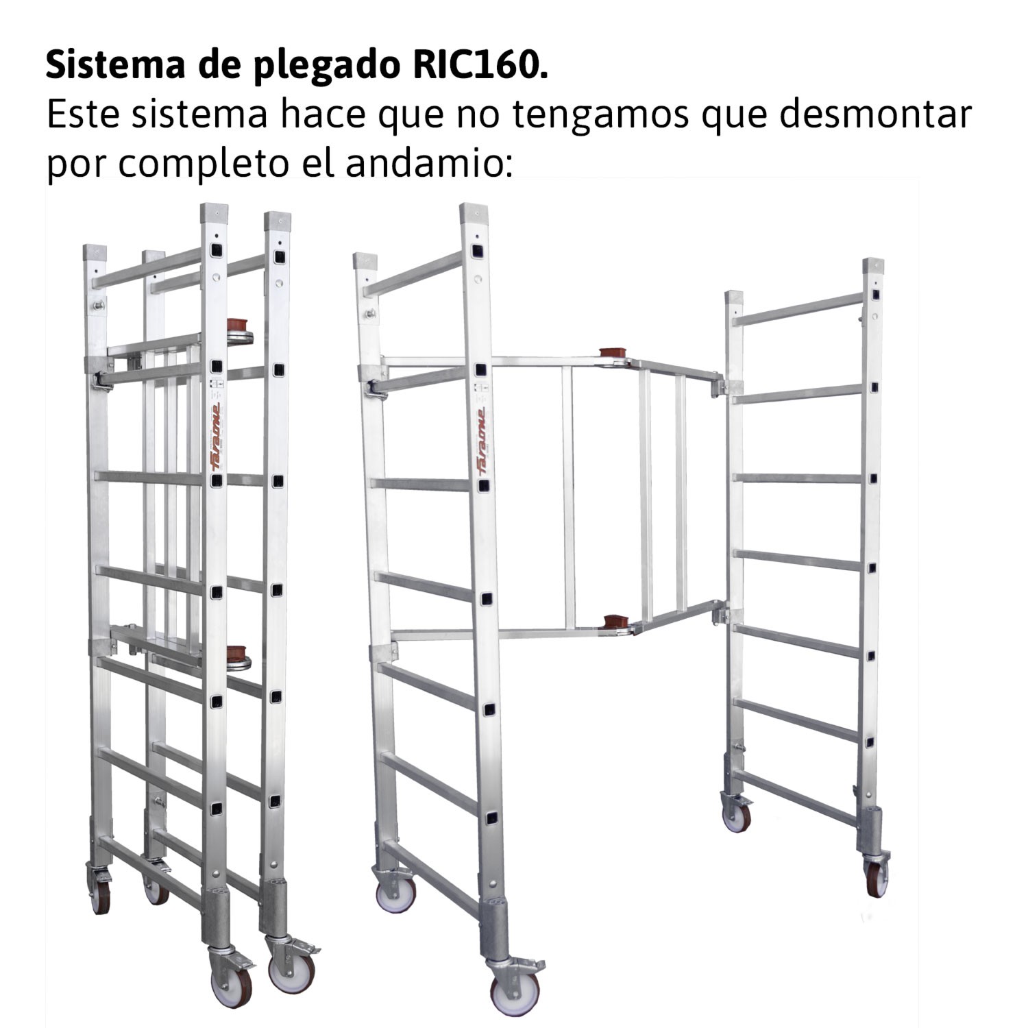 Andamio de aluminio con ruedas y plataforma de 160x80 cm.