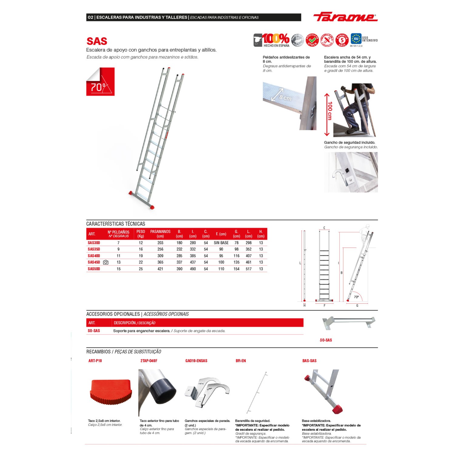 La SAS es una escalera en apoyo para subirse con total seguridad a una entreplanta o un altillo.