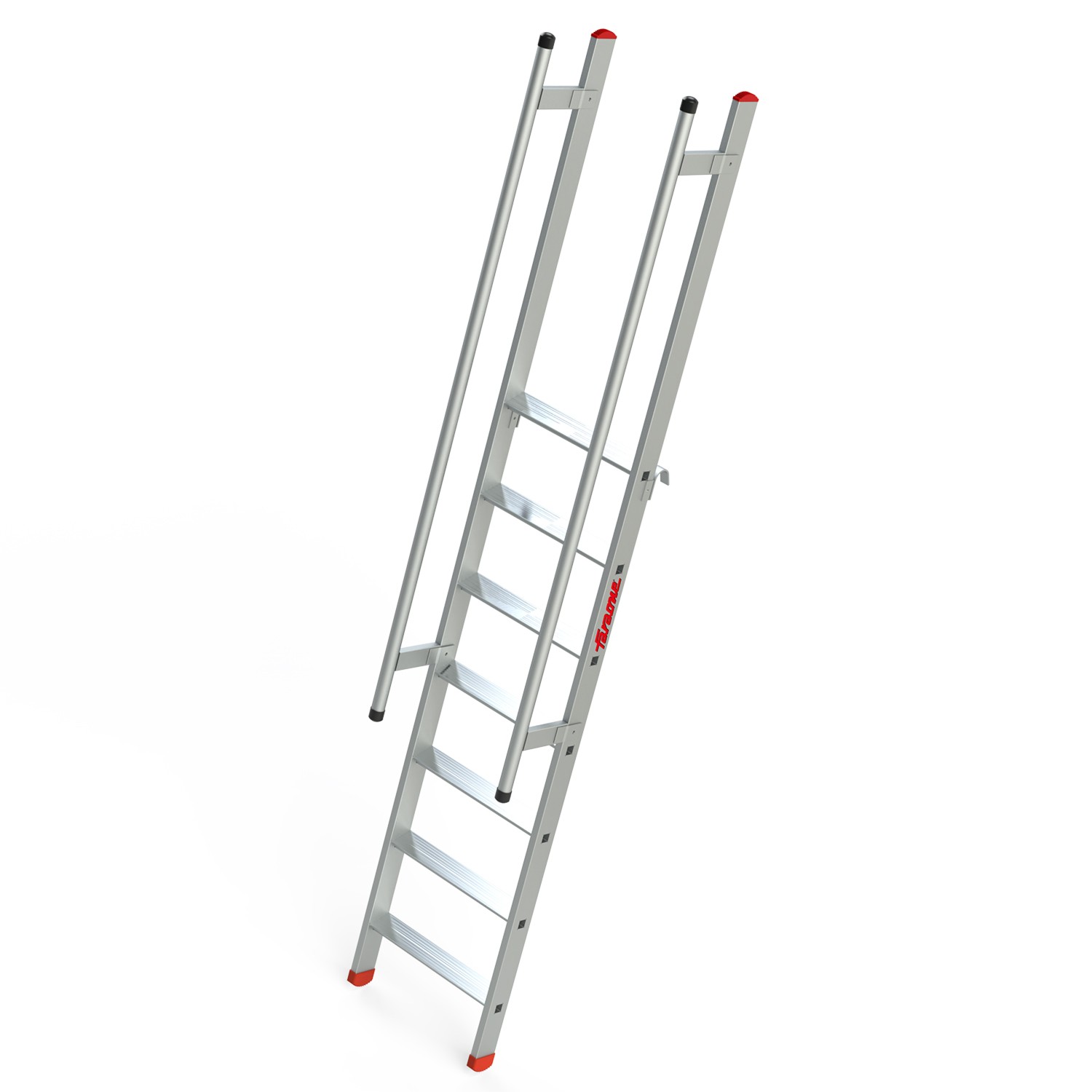 Tiene los peldaños antideslizantes de 8 cm y una inclinación de 70º que asegura una subida cómoda. Gracias a los pasamanos laterales y a la barandilla de seguridad de 100 cm de altura puesta en la parte de arriba, el desembarco es cómodo y seguro.