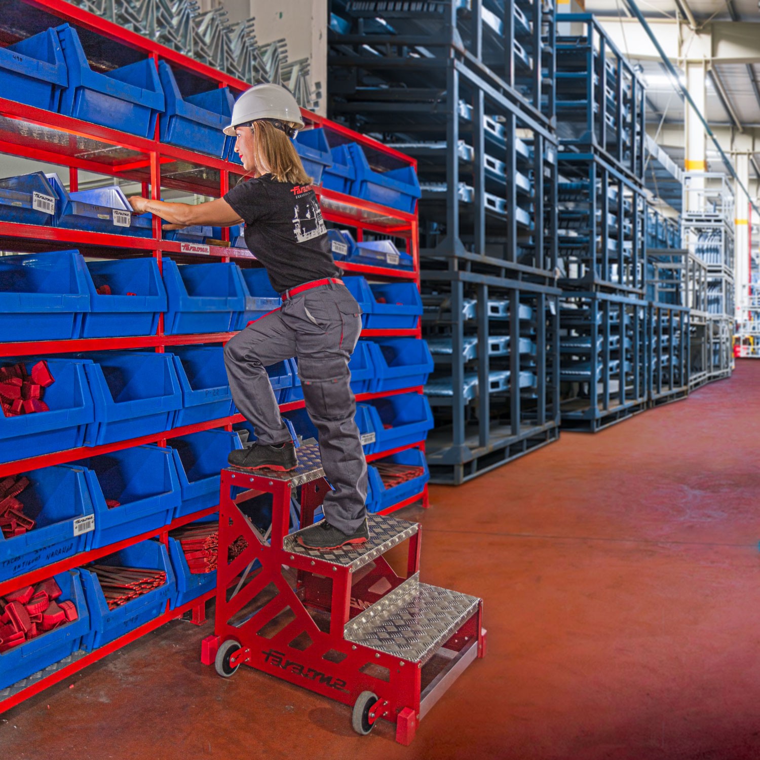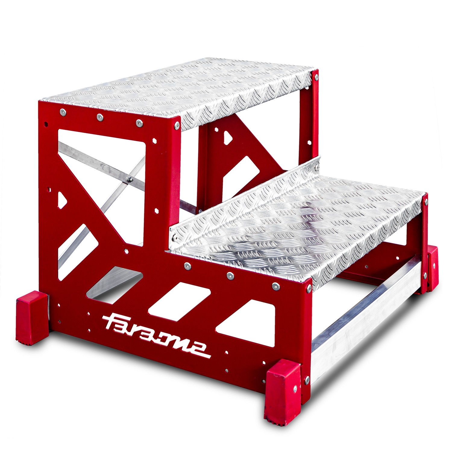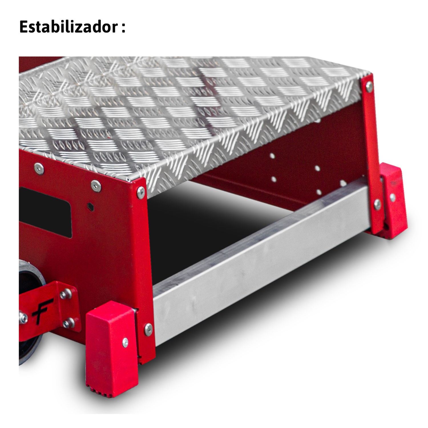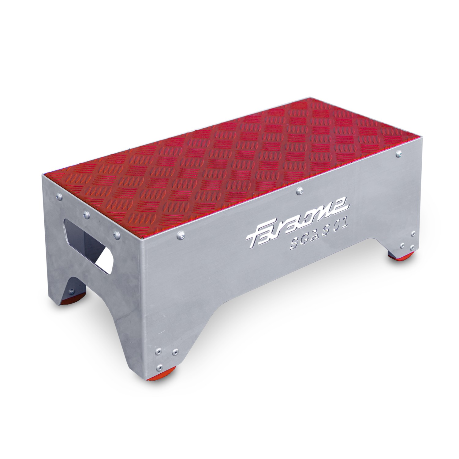 El SGAS es un taburete de aluminio fabricado con peldaños antideslizantes de 25x50 cm para dotar de estabilidad y seguridad durante el uso. Taburete tipo cúpula en el modelo de un peldaño y taburete tipo gradilla en el resto de modelos.