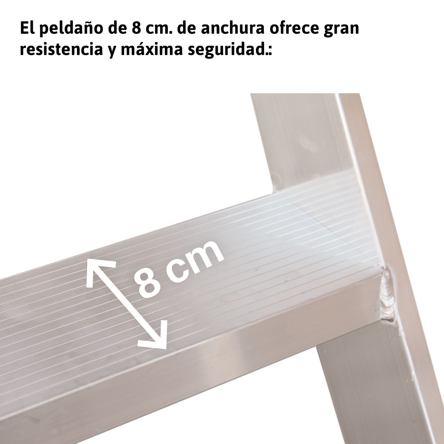 Los peldaños de 13 cm de ancho ofrecen una gran resistencia y máxima seguridad.