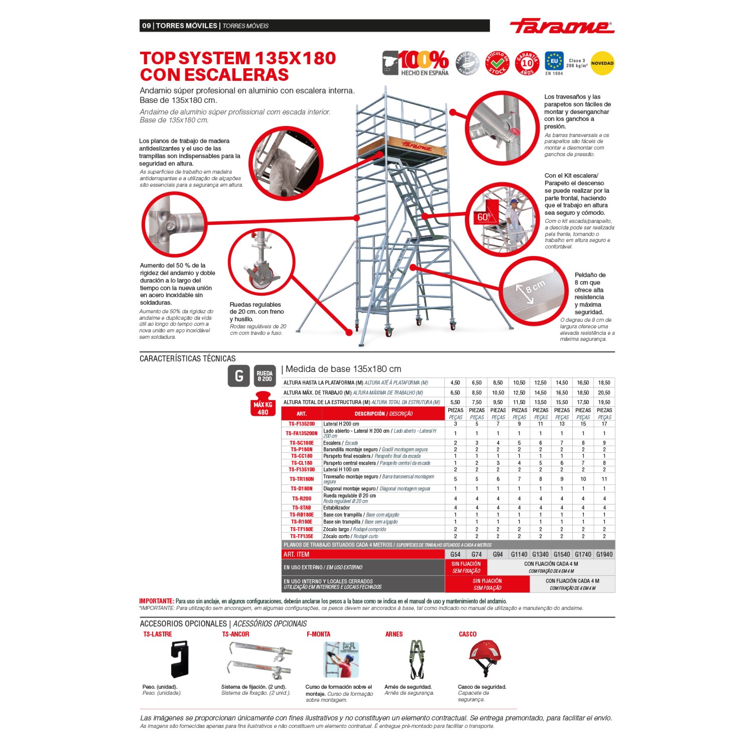 El TOP SYSTEM 135×180 cm es un andamio súper profesional en aluminio con escalera interior.