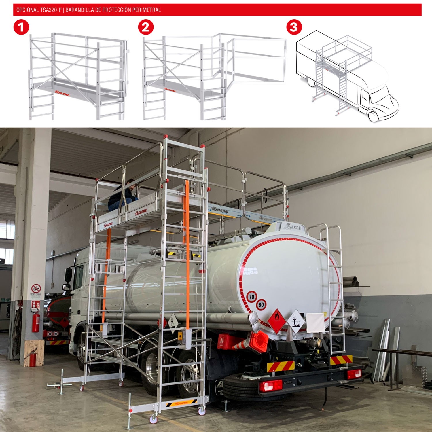 Opcional para artículo TSA320 | Andamio especial para talleres de camiones y autobuses.